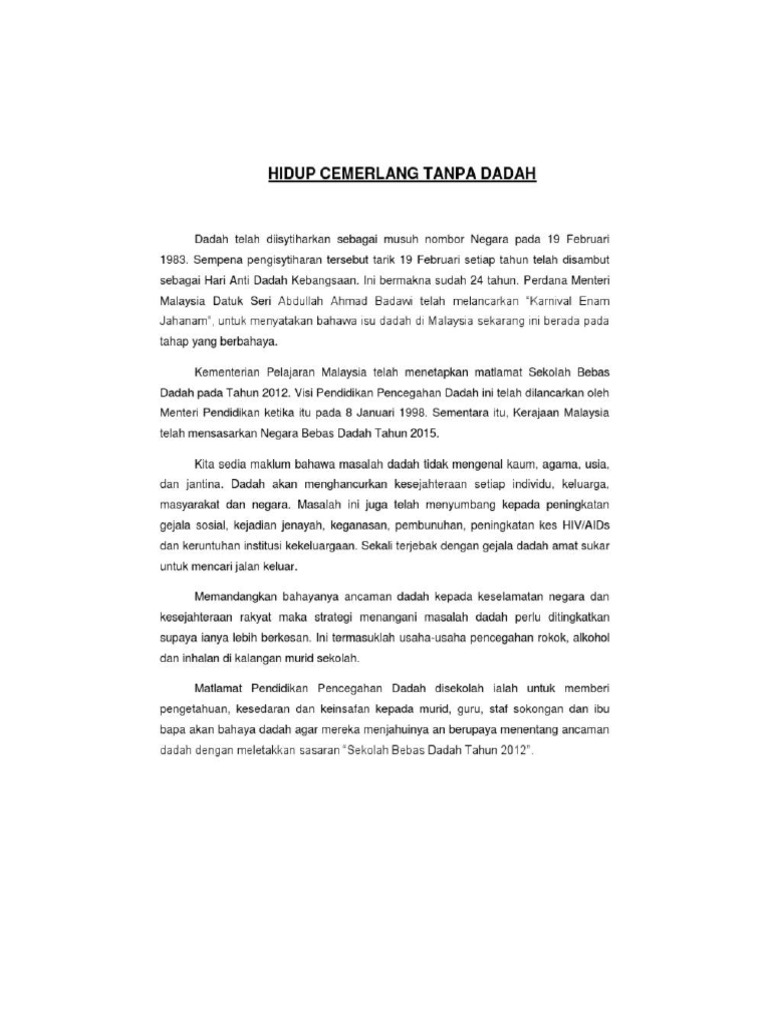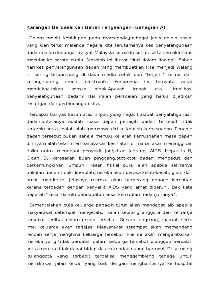 Karangan Cara Cara Mengatasi Masalah Penyalahgunaan Dadah Pdf